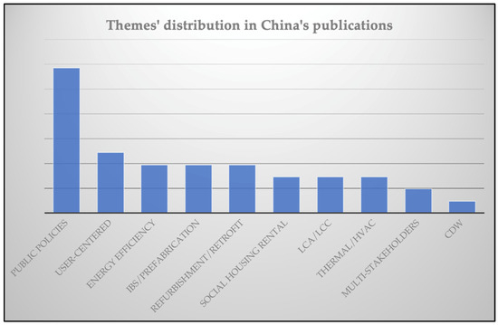 The country in Asia that invests the most in research into the themes of this SLR is China, with 38% of collaborations in this region. China has discussed housing policies and energy efficiency on the issue of SH with attention not only to technical aspects such as prefabrication and renovations but also to user involvement in this challenge (See Figure 8).