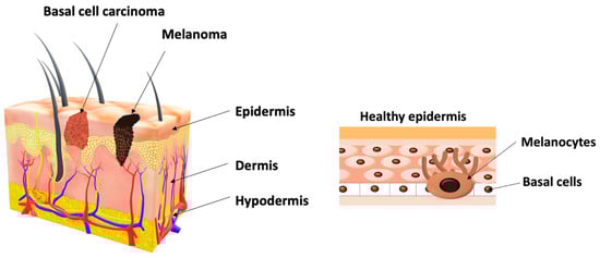 - Hasan, N.; Nadaf, A.; Imran, M.; Jiba, U.; Sheikh, A.; Almalki, W.H.; Almujri, S.S.; Mohammed, Y.H.; Kesharwani, P. Skin cancer: Understanding the journey of transformation from conventional to advanced treatment approaches. Mol. Cancer 2023, 22, 168. [Google Scholar] [CrossRef]