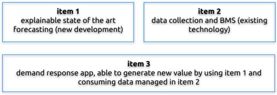 After realizing that there was no way for the particular forecasting development to independently move up from TRL 6/7, we embarked on the formulation of a co-creative concept. This is shown as the first step of the branch off, and called 7C1: concept development for a co-creative setup. The challenge for this 7C1 step would be threefold: first, to define a concept that could reach beyond TRL 7; second, to make sure that our particular development (explainable forecasting algorithm) was a value-adding part of this concept, as this would be imperative to achieve our main goal to push this item up the TRL ladder; and, third, to make sure that the new development could add value to the other parts of the co-creative solution. Indeed, as highlighted by Baldwin [], in order to be viable, any collaborative solution needs to generate tangible value to all parties, exceeding the effort consumed, one by one.