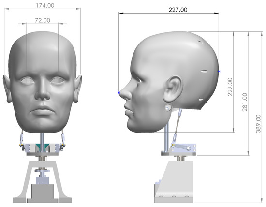 Dimensions of the Adam robotics head. All the measures are in millimeters.