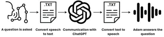 Adam’s conversational ability was centered around ChatGPT, and achieved in several stages, as illustrated in Figure 12, as follows: