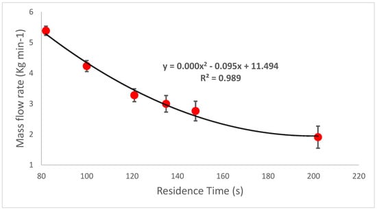 Figure 9 shows the trend of the residence time versus the flow rate.