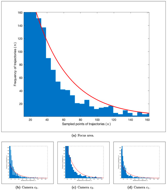 The dataset generated by the algorithm allows us to find the temporal relation for and, subsequently, with these data the associated graph for this relation can be constructed. Figure 4 represents the acquisition of frequency data versus the values of each trajectory of the objects captured by the cameras on the dataset mentioned in Table 3.