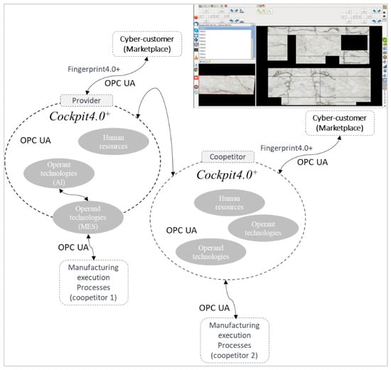 49]. Beyond serving as a mediator resource that interacts with cyber customers, Cockpit4.0 is equipped with the innovative “fingerprint4.0” feature, including a dual-compartment cargo vehicle: the first compartment houses detailed descriptions of the co-created product, which may include comments, notes, remarks, or other pertinent information. The second compartment carries the IFC/XML code, facilitating the creation of smart objects. Cockpit4.0 is considered state-of-the-art within the stone industry [