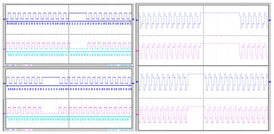 A more detailed examination of the signals was undertaken in [61] through the development of an online built-in self-test (OBIST) aimed at detecting single bit-flips and single stuck-at faults. Real-time monitoring of output signals from the motor driver was conducted using a Hantek 6022BE PC Oscilloscope, as illustrated in Figure 9. The captured waveforms apply to most contemporary motor drivers designed for the control of two-phase bipolar stepper motors. The TB6560, introduced in Section 3, is a microcircuit manufactured by Toshiba, featuring a galvanically isolated Step/Dir interface and offering four engine control modes: full-step, half-step, micro-stepping 1/8 step, and micro-stepping 1/16 step. These control modes enhance precision and balance power consumption while moving the mechanical axis of the solar tracking system.