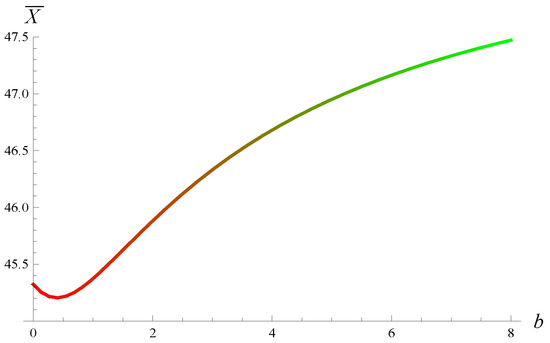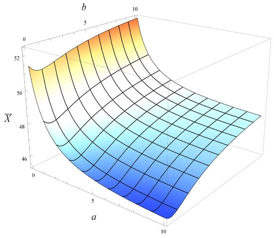 In Figure 8, the average queue length versus a and b is depicted. Because of the complex dependence on b, the minimum value is not reached on the boundary. The shortest average queue size is obtained for , while the longest is obtained for .