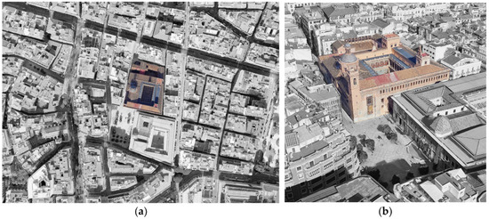 (a) Location of the Real Colegio-Seminario de Corpus Christi in the historic centre of Valencia; (b) view of Colegio del Patriarca and the Plaza del Colegio del Patriarca. Source: own elaboration from images generated in Google Earth (2024).