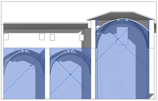 The initial test was conducted on the modelling of the rib vault plementeries, where the ‘mass’ tool was initially employed. The plementeries were modelled individually in accordance with the precise representation of the point cloud. The initial result was found to be in close alignment with the original representation of the building (Figure 5).