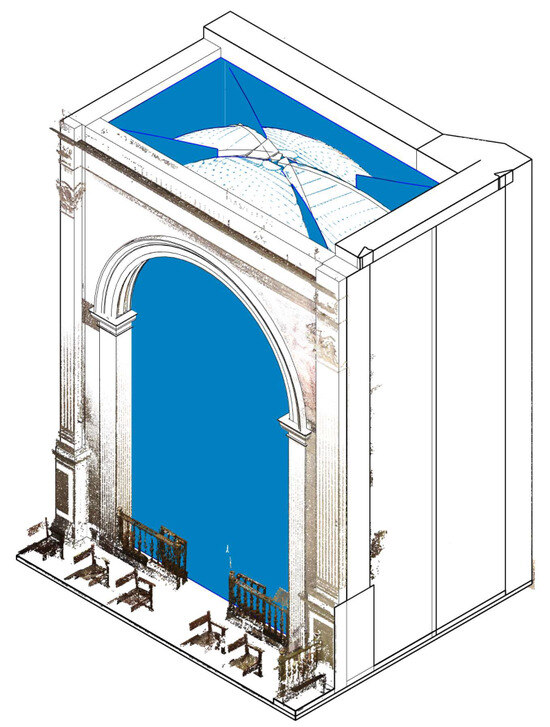 The church of the Real Colegio-Seminario de Corpus Christi de Valencia (Colegio del Patriarca) was selected as a case study due to the fact that its interior, which is covered by ribbed vaults (Figure 1), serves as an ideal test laboratory for the process that has been developed. The selection of this building is also contingent upon the fact that this undertaking constitutes a component of the HBIM-SIG-Tourism research project conducted at the Universitat Politècnica de València. This project encompasses an investigation into the preventive conservation and management of public use of the aforementioned building, the Cathedral of Valencia, and the church of San Juan del Hospital. These three heritage buildings represent pivotal elements within the cultural and tourist offerings of the city of Valencia.