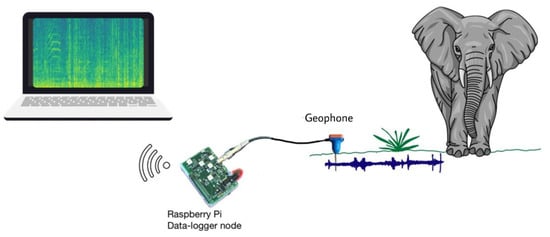 An overview of the system. The system captures infrasonic seismic signals using geophones. The captured signals are conditioned and transmitted to a computer for signal processing and implement a machine learning algorithm to detect elephant rumbles.