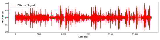 The MFCCs of a signal provide a characteristic representation of the signal. When extracting MFCCs, the signal is divided into overlapping frames of fixed 25 ms. The frames are shifted by 50% to create an overlap to ensure continuity. On each frame, a Hamming window is applied to taper the signal towards the frame boundaries. This is carried out to enhance the harmonics, smooth the edges, and reduce the edge effect while taking the discrete Fourier transform (DFT) [] of the signal. Each windowed frame is converted into a magnitude spectrum by applying a DFT as follows: