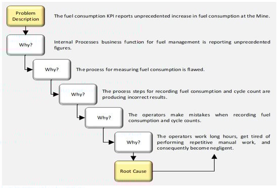 Discovering the properties of the CFKPIs enabled efficient troubleshooting through the adoption of the 5 WHYs root cause analysis technique. The root causes for performance predicaments were able to be traced from enterprise functions to business functions, processes, process steps, and resources. This enabled the mine to locate and optimize the components of the CFKPIs that caused underperformance. The mine was also able to determine the components of the CFKPIs that underpinned good performances and to pinpoint those components that required optimization. The properties were also used for predictive analytics by monitoring the performance of the CFKPIs’ components and subsequently predicting the future outcome. This allowed the mine to act swiftly and optimize or replace the problematic components to avoid underperformance.
