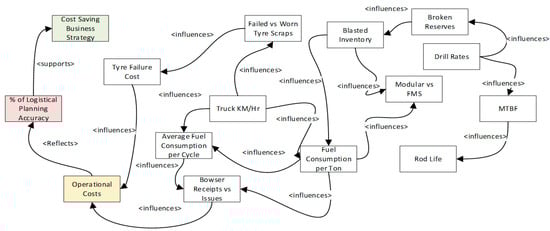 The mapping of SKPIs to their corresponding enterprise functions provided valuable insights into the correlations between SKPIs, variables, and enterprise functions. The dominant enterprise functions represented shared objectives that the variables within each SKPI strived to achieve. This is substantiated by the ID and CLD presented in Section 4.4.1. For instance, the most influential variables in the 1st SKPI originated from the Logistics enterprise function, as illustrated in Figure 11. The overarching goal of these variables was to optimize logistical planning accuracy, as depicted in Figure 8 of Section 4.4.1. Similarly, the 2nd SKPI’s dominant variables belonged to the Maintenance and Finance enterprise functions, as shown in Figure 11. The common objective of these variables was to optimize maintenance adherence, thereby reducing unplanned and costly downtime, as illustrated in Figure 10 of Section 4.4.1. This analysis revealed precise correlations between dominant enterprise functions and the shared goals of variables within respective SKPIs.