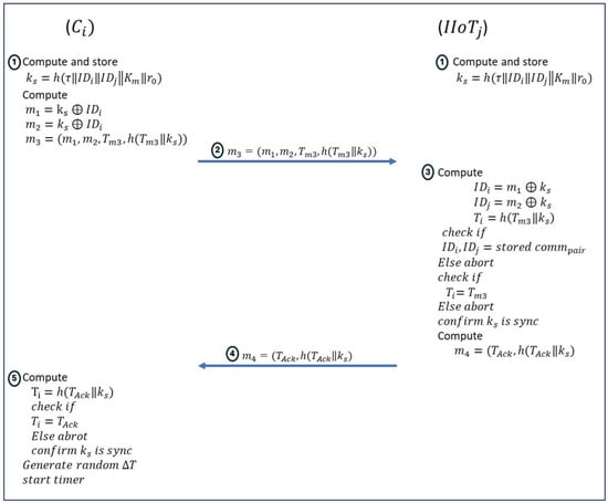 Within our proposed system model, users/controllers and IIoT devices initially engage in an online registration process with a TA, followed by an offline registration process with one another. When adding a new IIoT or a new user/controller (a new communication path is allowed in the system), the new device sends a message to for the purpose of validation. The sends a message to the IIoT device and the User (the communication partners). After the reception of these messages, both the User and the IIoT device proceed to generate and confirm the authentication key for future messages. The and device selection methods ensure the soundness of the suggested strategy.