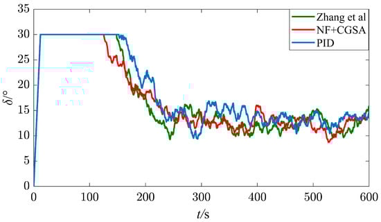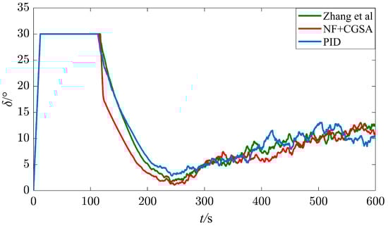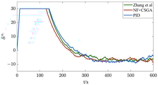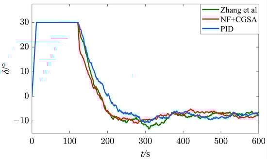 In the following simulation results, we compared the control effect of three kinds of control methods: Zhang et al. (proposed in [28]), NF+CGSA (proposed in this paper), and the traditional PID control method. The decline ratio is the comparative result of the first two control methods.