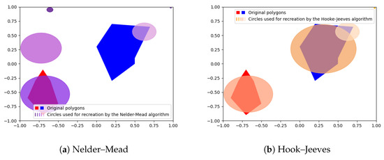 Recreation of the polygons by the hybrid algorithm using 5 circles (after increasing the number of iterations).