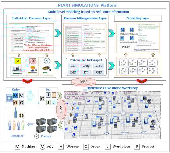 Development of Real-Time State Models: The framework establishes real-time status models for human–machine–logistics resources, integrating dynamic information on workers, equipment, and materials within the workshop. This allows the scheduling system to self-organize based on real-time data, improving flexibility and response speed.