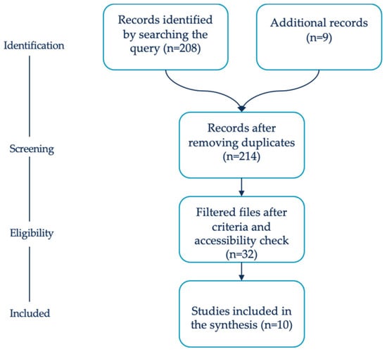In the second step, these 32 studies were further analyzed based on the following criteria: (1) maturity measurement, (2) use of capabilities to describe data-driven organizations, (3) concept of analyzing both the as-is and to-be status, (4) development of a roadmap with recommendations for action, (5) use of an assessment tool, and (6) calculation of maturity levels. Access was not available for two studies. A study was included in the detailed analysis if it met more than three of the criteria. Ultimately, ten relevant studies were selected for extracting critical information to inform the development of our model (Figure 3).