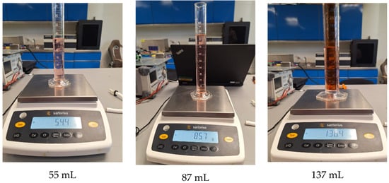 The analysis of the measurement errors shows that the deviations between the actual measurements and the target values are generally minor, indicating a high level of accuracy in the system’s performance. In the case of the weight scale, the errors range between 0.06 and 8.8 g, showing that the mass measurements are very close to the setpoints. Similarly, the errors observed when comparing the setpoints with the graduated cylinder data range from 0 to 7 mL, reflecting remarkable consistency in the volumetric measurements.