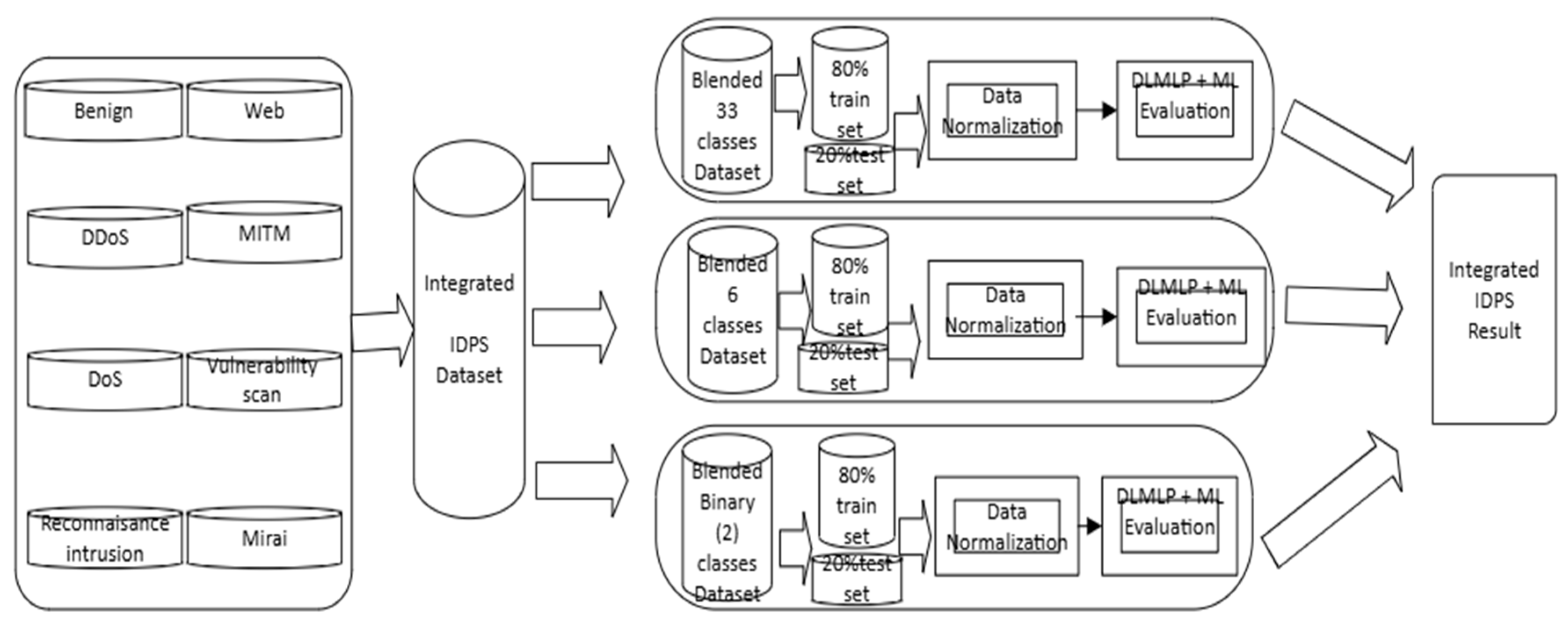 - We develop, design, implement, and evaluate the deep learning multilayer perceptron intrusion detection and prevention system (DLMIDPSM) and machine learning (ML). The combined model is known as ML and DLMIDPSM. We use this combined model to classify, detect, and prevent IoT network device traffic that represents benign or malicious attacks.