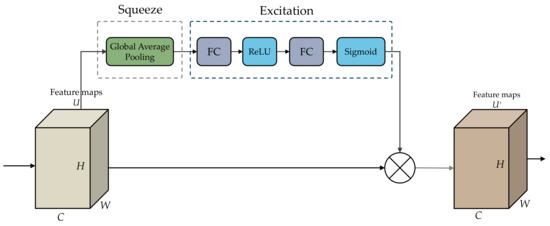 - Hu, J.; Shen, L.; Sun, G. Squeeze-and-Excitation Networks. In Proceedings of the 2018 IEEE/CVF Conference on Computer Vision and Pattern Recognition, Salt Lake City, UT, USA, 18–23 June 2018; pp. 7132–7141. [Google Scholar] [CrossRef]