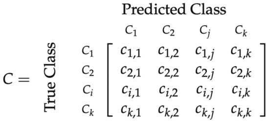 The efficacy of the deep learning models in the present research was evaluated utilizing a confusion matrix. This square matrix with k classes offers comprehensive findings for a multiclass classification issue. The confusion matrix provides an in-depth evaluation of accurately and inaccurately classified occurrences by supervised learning models. An element in the matrix denotes the frequency of instances of class that have been categorized as class . The confusion matrix also emphasizes classification inaccuracies.
