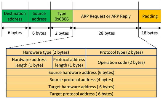 - RFC 826; An Ethernet Address Resolution Protocol: Or Converting Network Protocol Addresses to 48.bit Ethernet Address for Transmission on Ethernet Hardware. RFC Editor: Marina del Rey, CA, USA, 1982. [CrossRef]