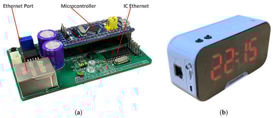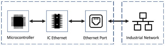Figure 4 shows the principal diagram of the attack device. The microcontroller manages the system’s operation, communicating with the Ethernet IC via the Serial Peripheral Interface (SPI) serial communication standard to send and receive packets. The Ethernet IC connects the attack device to the industrial network through the Ethernet port.