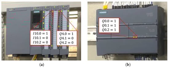 Two experimental scenarios are conducted to evaluate not only the inference capabilities of the proposed toolkit but also its limitations in terms of traffic handling under attack conditions. In the first scenario, the master PLC transmits the status of three input signals, specifically , , and , to the first slave PLC. The slave PLC then maps the received data to its corresponding output channels, , , and . Given the minimal data volume and the small number of participating PLCs, this configuration ensures rapid communication and exhibits limited vulnerability to cyberattacks.