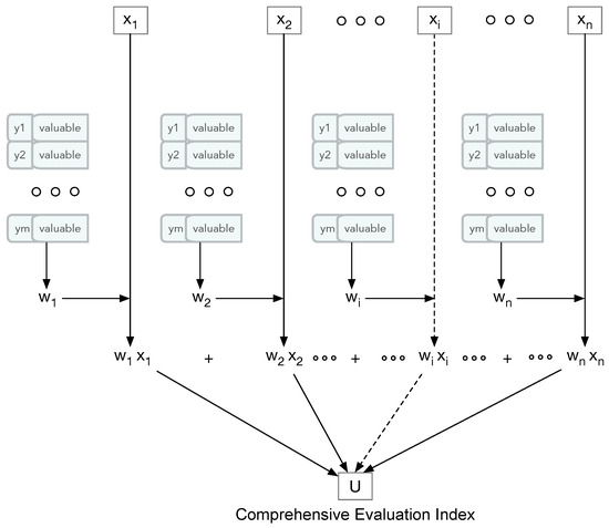 The comprehensive evaluation index U quantifies how well the subsystem is developed based on the setup predictors. More specifically, U is defined by Equation (1):