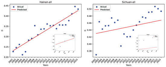 We decide to use regression to fill the missing data. For each predictor, a Python script is developed to automatically identify missing data on a per row basis (i.e., for each region over the years 2002–2023). If any missing data item is found, the available data for the same region are used to train the regression model, and the trained regression model is then used to fill the missing data items.
