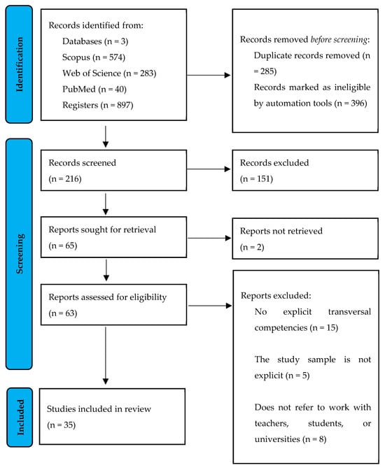 The inclusion criteria for this study focus on research conducted with higher education teachers and students, covering universities and undergraduate, graduate, or postgraduate programs, regardless of whether the institutions operate under hybrid, face-to-face, or virtual models. Studies investigating the use of generative artificial intelligence tools, such as large language models (LLMs), text or image generators, and generative adversarial networks (GANs), assessing transversal competencies are considered if verifiable qualitative or quantitative results are provided. Empirical articles and systematic reviews published in indexed academic journals, in English or Spanish, from 2023 onwards are included, given the novelty of the line of research. As exclusion criteria, especially for the final synthesis, studies focused on educational levels other than higher education, those that do not use generative AI tools, publications in languages other than English or Spanish, documents other than articles or reviews such as Editorial, Note, Letter, Erratum, Conference paper, Book chapter, Book, and studies published before 2023 are discarded.