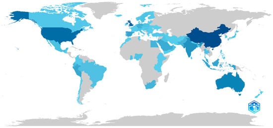 Country scientific production. Note: The most intense blue colors represent the most prominent countries.