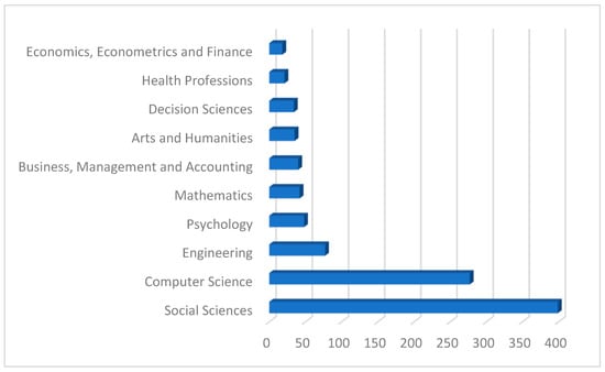 The results show that Social Sciences stand out as the most represented field, suggesting a predominant interest in studying the impacts of generative AI from social, pedagogical, or educational perspectives. In second place, Engineering appears, with a notably lower but significant volume, indicating its importance in the technical development and application of generative AI. Other areas such as Mathematics, Arts and Humanities, and Health Professions present smaller but also relevant contributions related to technical methodologies, creative applications, or ethical implications in the context of AI in higher education, and finally, the other areas show a low representation, indicating that the connection between these disciplines and the use of generative AI in education is more limited. These results reflect the growing presence of an interdisciplinary perspective, where diverse areas of knowledge converge to explore and enhance the applications of generative AI in higher education.