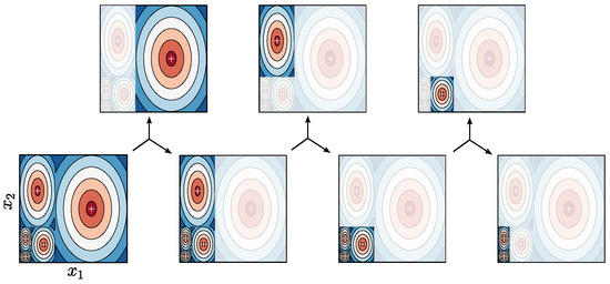 An intuitive illustration is shown in Figure 1. The contour lines depict the fitness landscape of a two-dimensional optimization problem with five optima, which are denoted by white crosses. Although there are significant differences in the size of BoA between the five optima, it is not hard to find the two optima with the largest two BoAs. If these two prominent BoAs can be told apart, the problem can be divided into two subproblems, whose search spaces are the largest BoA and the remaining four BoAs, respectively. For the second subproblem, it can be further divided into two subproblems whose search spaces are the second largest BoA and the three remaining BoAs, respectively. Through this recursive process, a niching method that can only find the two optima with the largest two BoAs is eventually able to locate all five optima.