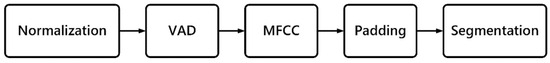 Prior to model training, audio data undergoes preprocessing to standardize inputs and minimize non-speech interference. The detailed preprocessing workflow is depicted in Figure 3.