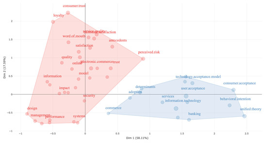 The co-citation and factorial analyses (Figure 9) reveal that traditional Technology Acceptance Models (TAM, UTAUT) have evolved into more expansive frameworks that integrate trust, risk perception, and security—particularly in the context of mobile and decentralized platforms. These findings support and extend prior works (e.g., [28,29]), highlighting the increasing importance of multi-dimensional trust and contextual security in influencing user adoption.