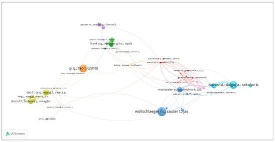 As IoT-based industrial communication is one of the key pillars for the expansion of Industry 4.0, it is essential to unify these systems. Industrial automation is increasingly relying on the deployment of highly reliable networks that provide fast data transmission []. In addition to communication, the digital supply chains mentioned in the first cluster also rely heavily on IoT-based systems. Closed-loop supply chains (CLSCs) and sustainable supply chains (SSCs) play an important role in industrial digitalisation. Manavalan et al. have developed a framework that identifies five key aspects for measuring the digital transformation of supply chains: management, technology, sustainability, business strategy, and collaboration []. Industry 4.0 plays a crucial role in the advancement of digitalisation, but one of the primary goals of Industry 5.0 is to support human-centered innovation, complemented by AI. The ultimate goal is to create more ethical and sustainable business processes [].