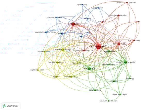 Co-Occurrence Network of Keywords—Clustered Themes in Industry 4.0 and 5.0.