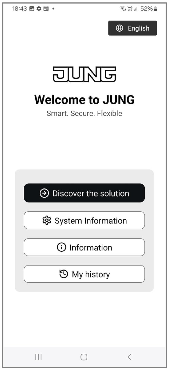 eNet Smart Home. eNet SMART HOME is a wireless smart home automation system developed in collaboration between the German companies Gira and JUNG. The system architecture is based on decentralized control and two-way radio communication, which allows the integration of various building components without the need to modify the electrical installation. This technology is becoming especially relevant in renovated homes, where wiring is limited []. Unlike traditional systems, eNet SMART HOME allows the user to control lighting, blinds, heating and scenario-based automation solutions via a mobile application. Such user interface solutions, focused on simplicity and adaptability, increase the acceptability of smart systems among a wide segment of consumers [].