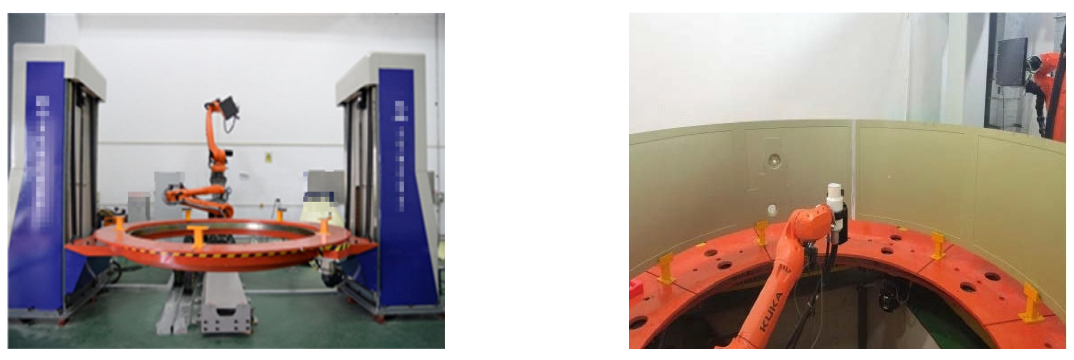 - Zhu, F.; Bai, X.; Xia, Z.; Meng, T.; Liu, X.; Yin, W.; Yang, W. Pose control and profile tracking with eddy current sensor and robotic arm for NDT applications. NDT E Int. 2025, 151, 103312. [Google Scholar] [CrossRef]