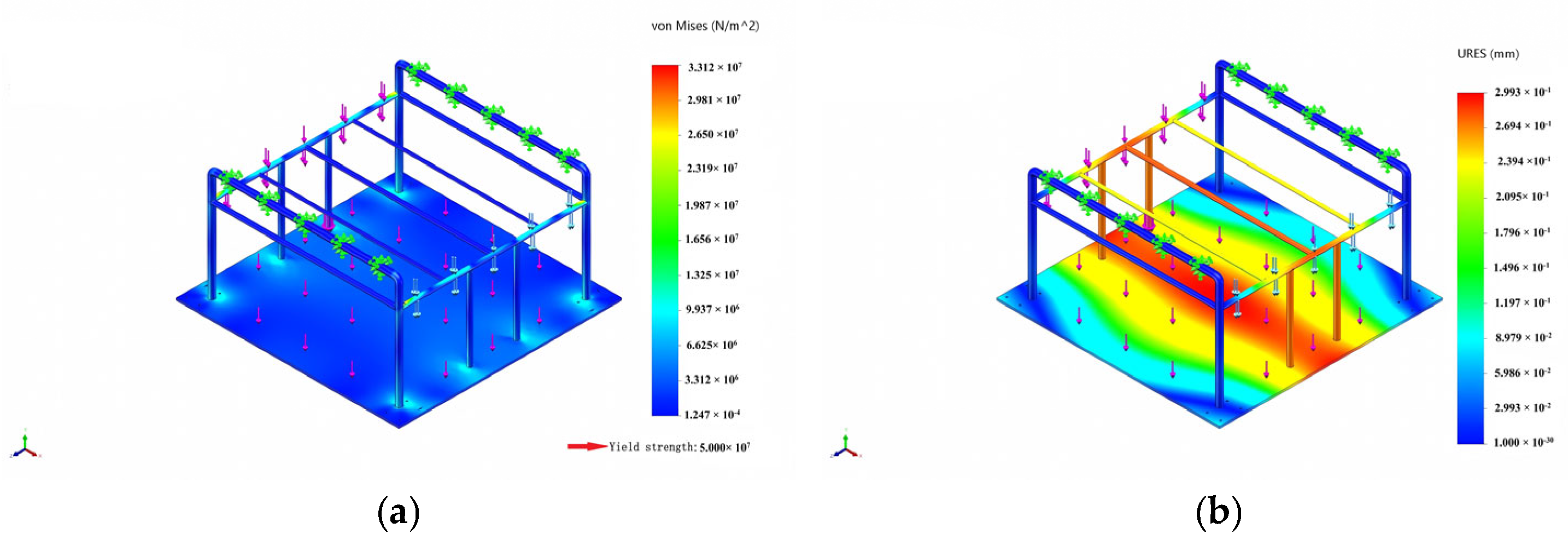2.3.1. Static Load Analysis of Hanging Rail Frame