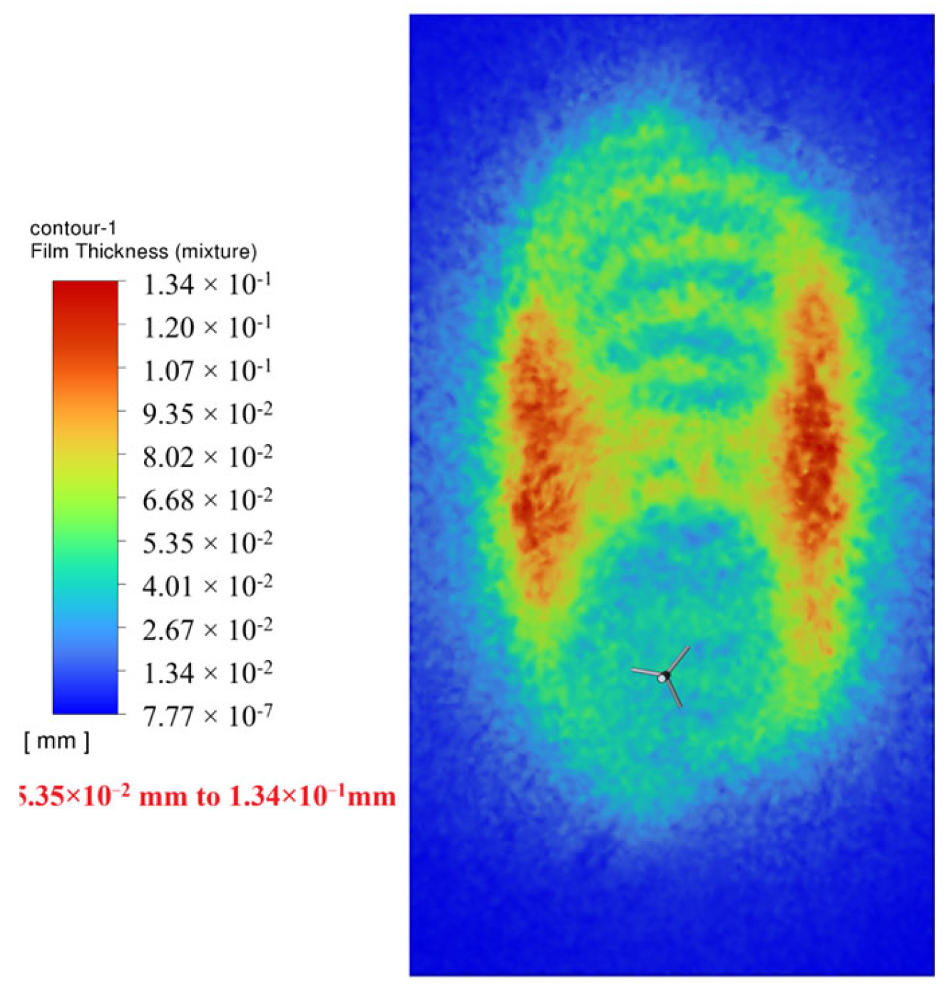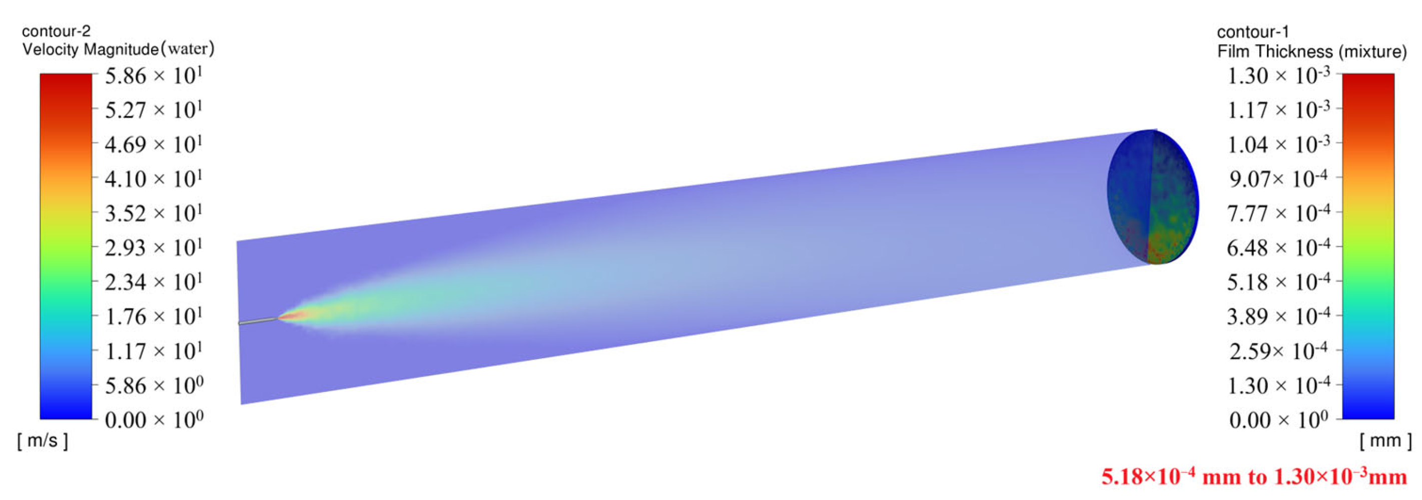 3.6.2. Dynamic Spray Fluid Simulation Results (ANSYS Fluent)
