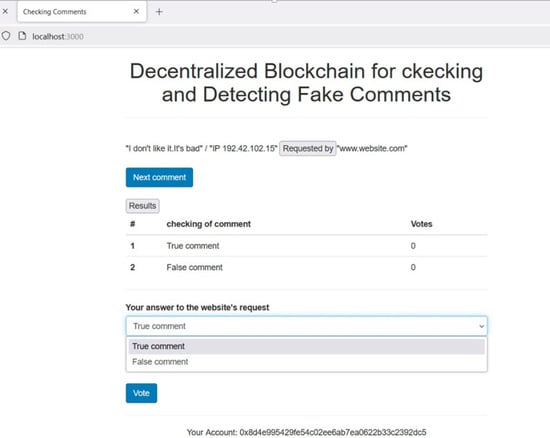 Figure 6 shows that our Ethereum Blockchain transactions were processed quickly, providing high speed to our system. Regarding security concerns, our system offers high security due to predetermined smart contracts. A comment is considered fake when it receives at least 51% of votes.
