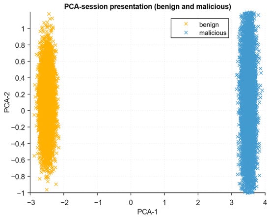 The attractor types (fixed points, limit cycles, and strange attractors) differ in spectral and statistical characteristics—this is one of the key features for separating classes. Benign systems often have stable stationary (or periodic) attractors, while malicious processes can exhibit multi-attractorism, frequent transitions between regimes, or positive Lyapunov exponents [,].