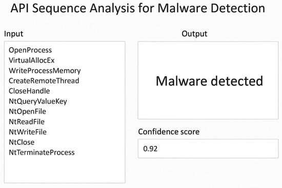 - Li, N.; Lu, Z.; Ma, Y.; Chen, Y.; Dong, J. A Malicious Program Behavior Detection Model Based on API Call Sequences. Electronics 2024, 13, 1092. [Google Scholar] [CrossRef]