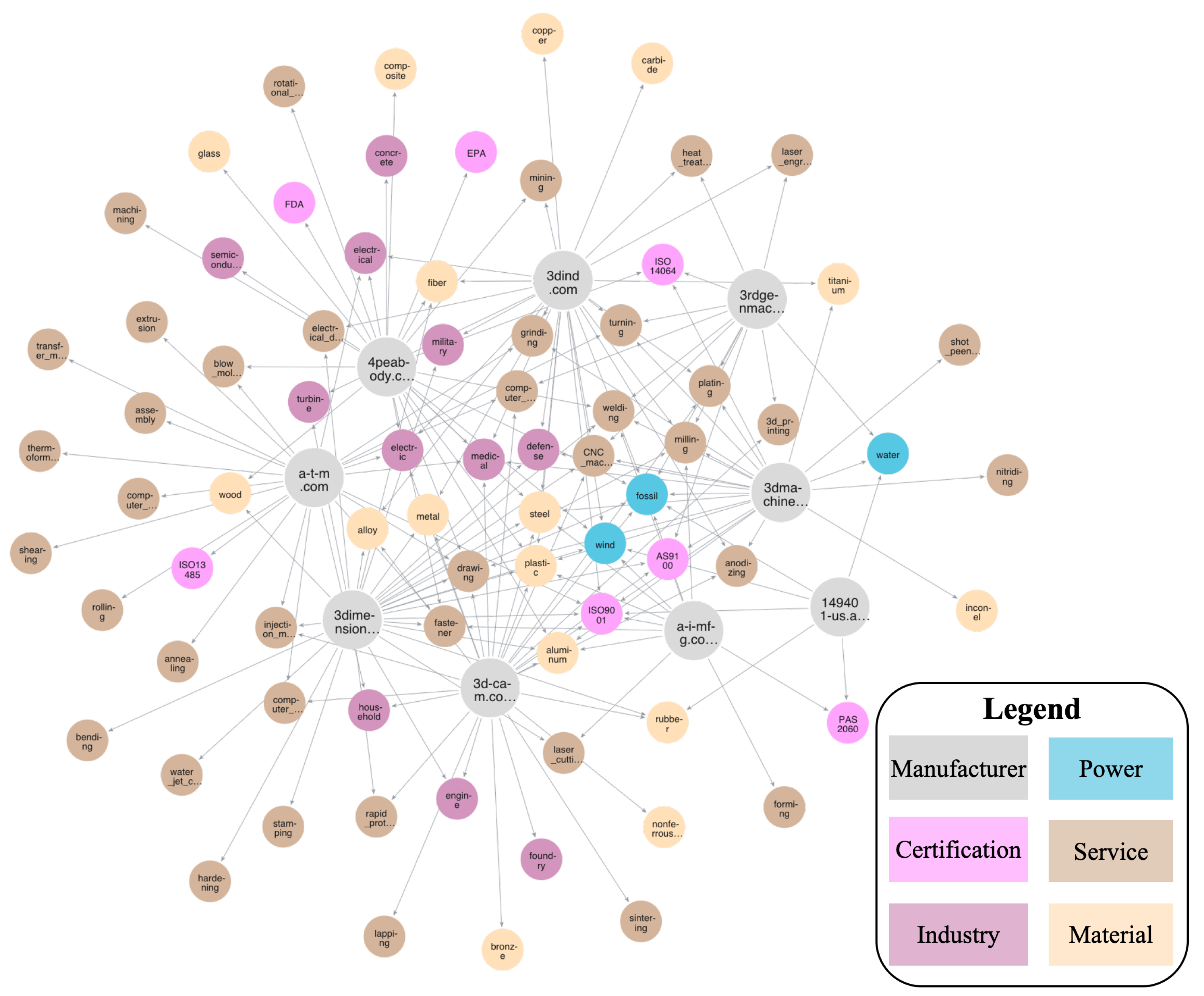 - Li, Y.; Liu, X.; Starly, B. Manufacturing service capability prediction with Graph Neural Networks. J. Manuf. Syst. 2024, 74, 291–301. [Google Scholar] [CrossRef]