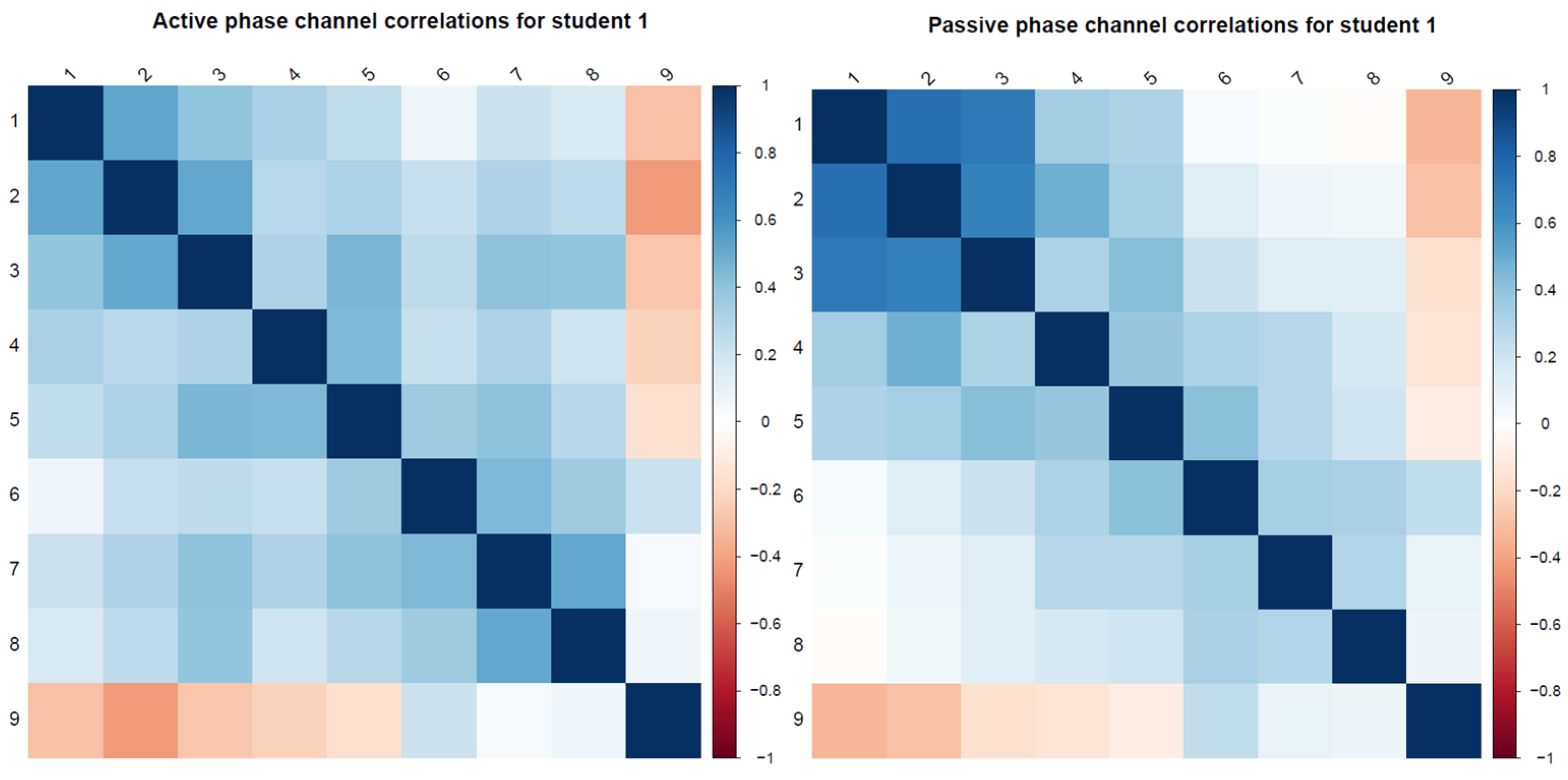Figure 9, we present the heatmaps for the active phase and passive phase channels for student S1.