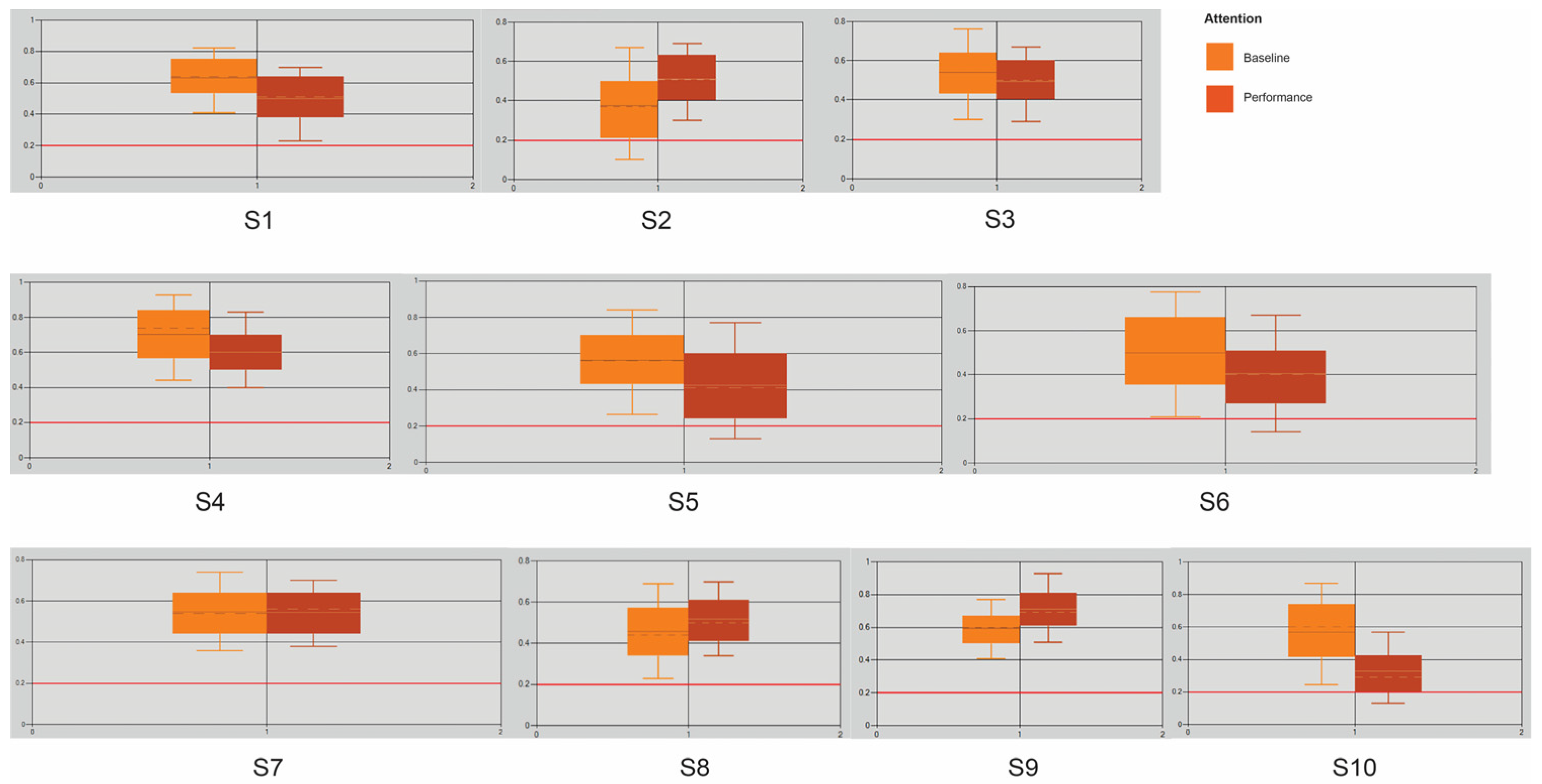 Supplementary S2. Collected_data_Rformat), we analyzed the average attention levels during the baseline phase and the performance phase. The ratio of the attention averages for the baseline and performance phases is shown in