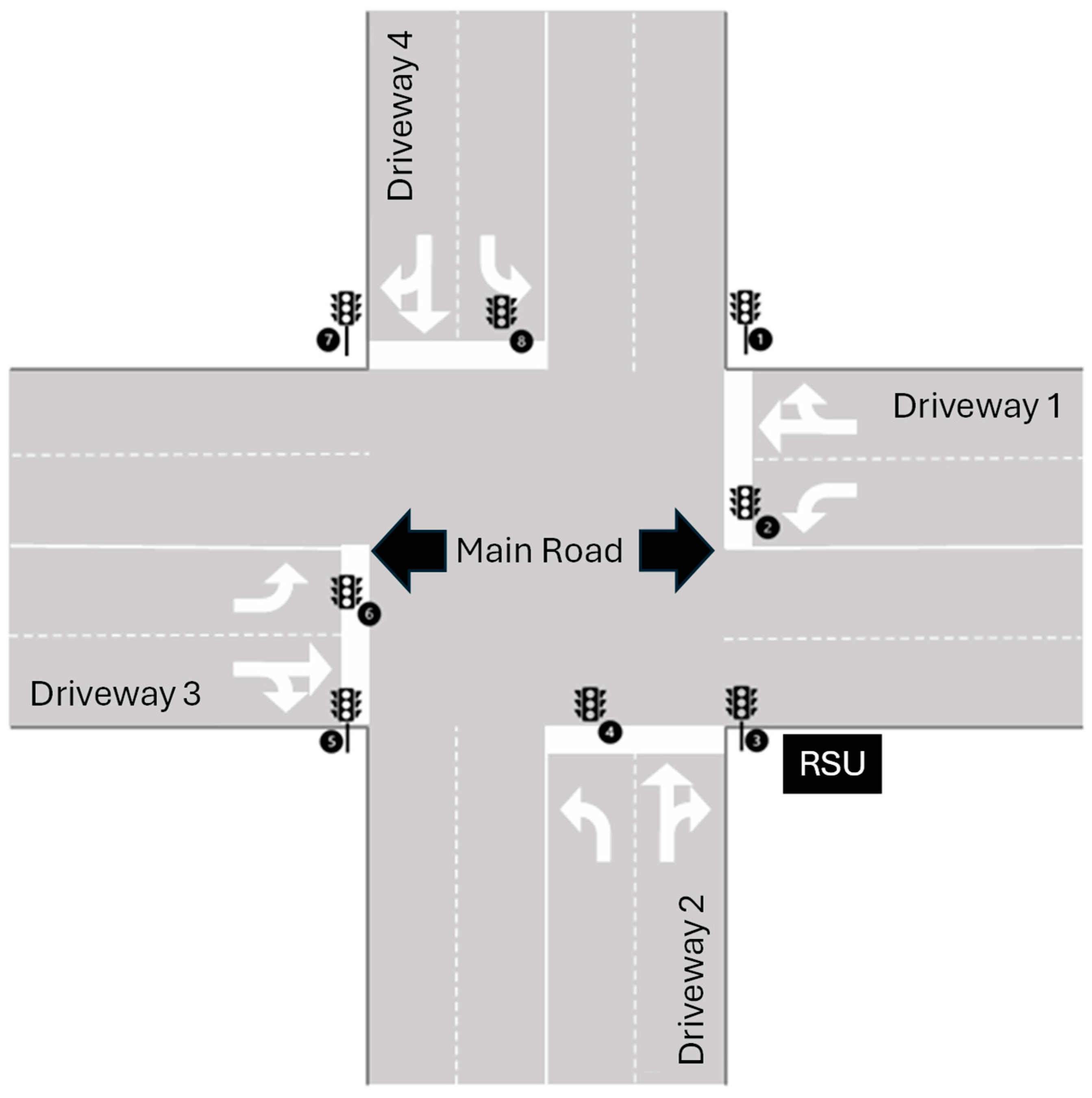 - Gath, N.; Kaths, J.; Kürschner, M.; Schendzielorz, T.; Krause, J.; Schön, T.; Noll, B.; Mosebach, H.; Petry, F.; Ungureanu, T.; et al. Leitfaden für die Einrichtung Kooperativer Systeme auf Öffentlicher Seite. Available online: https://www.mos.ed.tum.de/vt/forschung/projekte/abgeschlossene-projekte/urban-abgeschlossen-2016/urban-leitfaden/ (accessed on 8 April 2025).